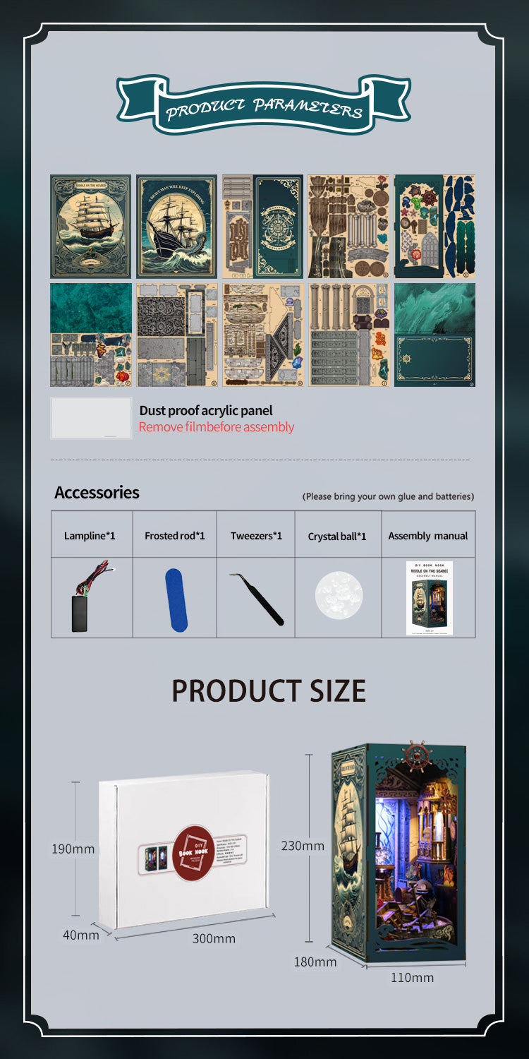 Embark on a creative adventure with the TJWFUNFUN DIY Book Nook Kit – Dark Box Mystery Case Riddle on the Seabed. This unique 3D wooden puzzle recreates a mysterious underwater shipwreck, complete with corals, treasures, and a sleeping pirate ship. With 216 pieces and LED lighting, it’s an enjoyable mid-level challenge and a captivating decoration for your bookshelf.