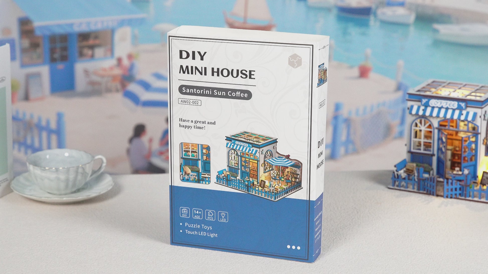 Escape to the Aegean coast with the TJWFUNFUN Santorini Sun Coffee DIY Mini House — a Mediterranean-style café filled with sunshine, sea breeze, and leisure charm. With 317 precision-cut pieces, this kit lets you handcraft a cozy seaside café scene inspired by the blue-and-white architecture of Santorini.