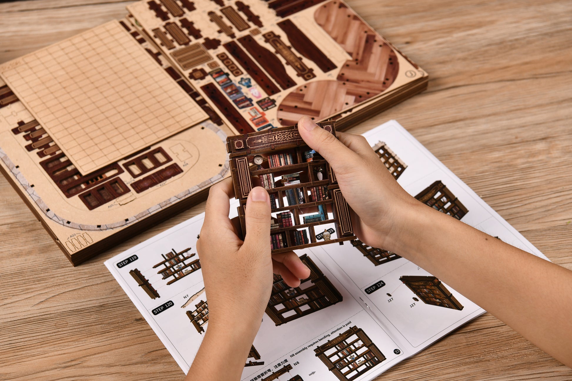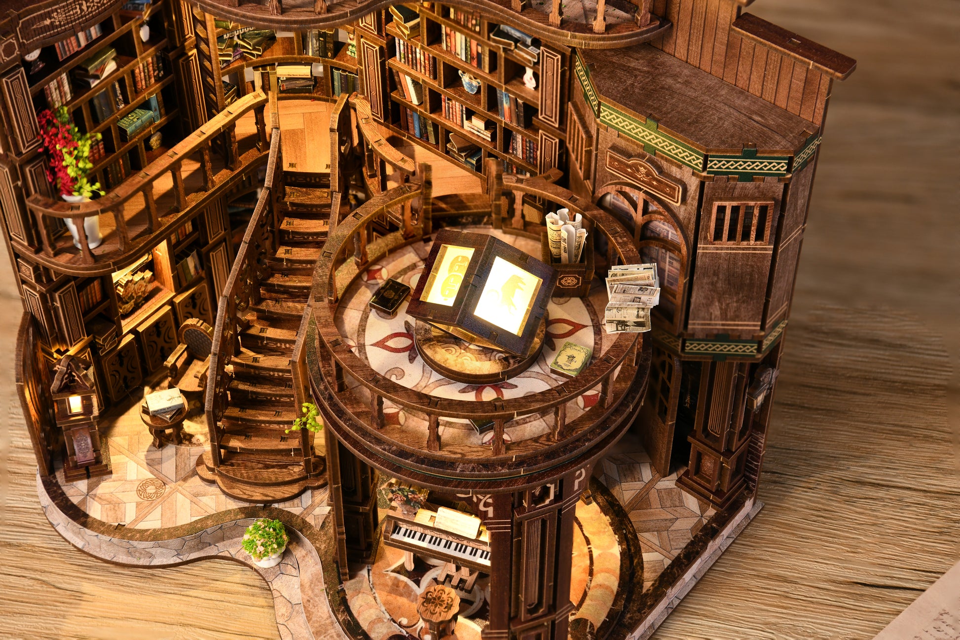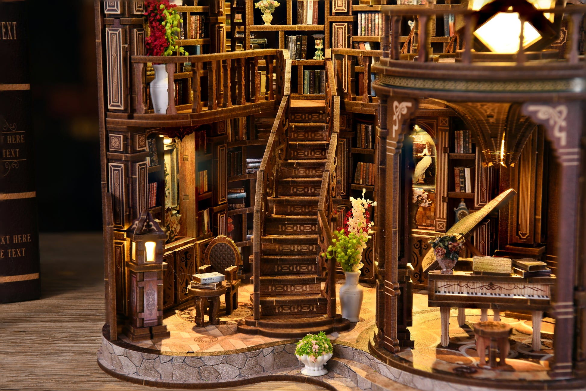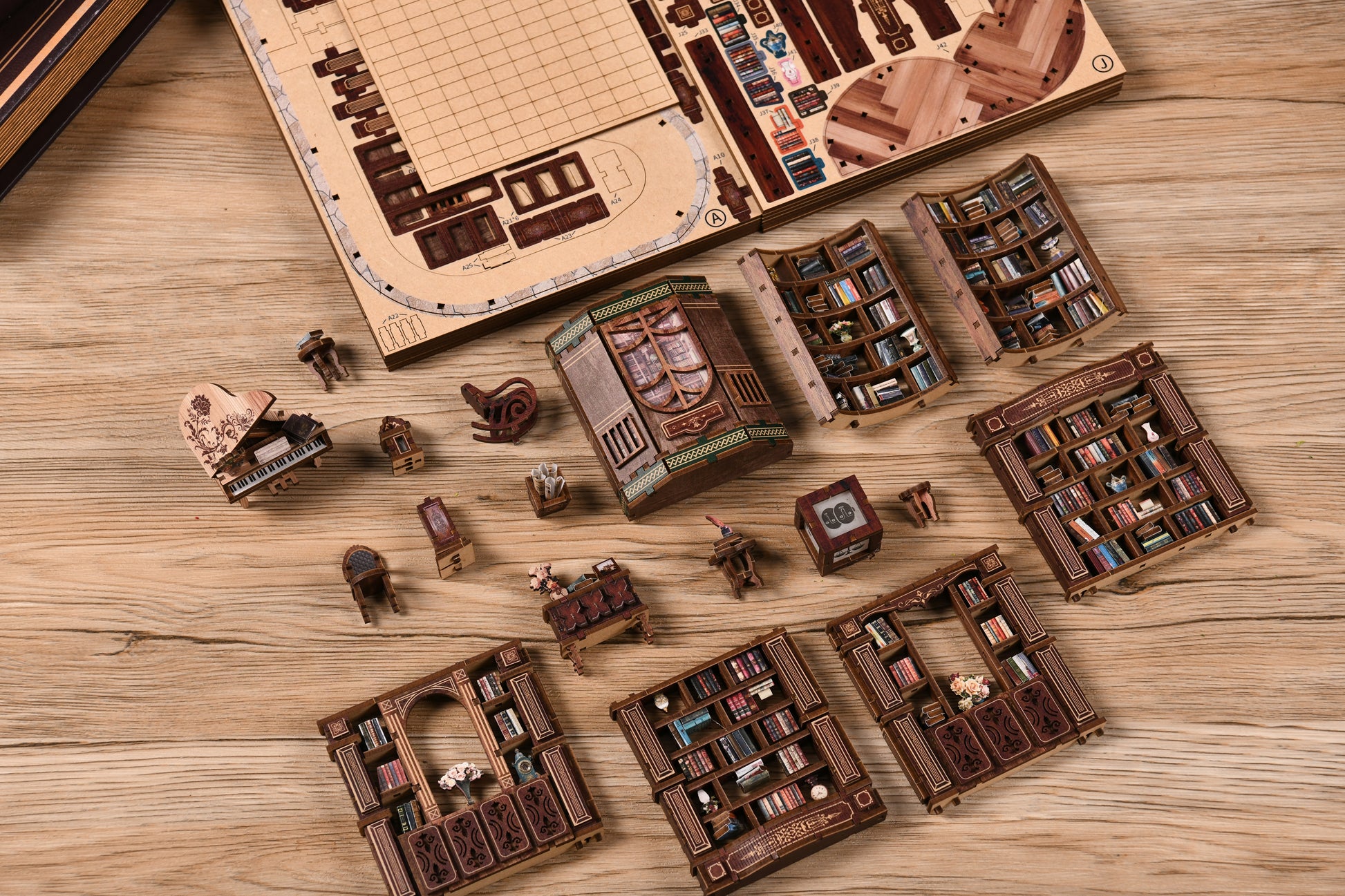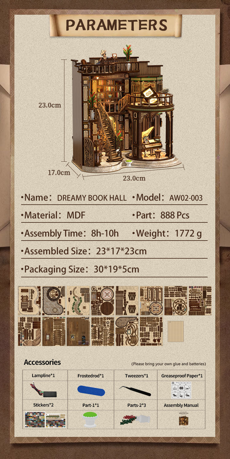 Enter the enchanting world of the Dreamy Book Hall, a grand miniature project designed for true DIY enthusiasts. With intricate staircases, elegant bookshelves, a piano centerpiece, and warm LED lighting, this build captures the magic of a classic library. Containing 888 precision-cut pieces, it offers an advanced challenge and a rewarding final display. Perfect for collectors and hobbyists who enjoy immersive, long-hour builds.