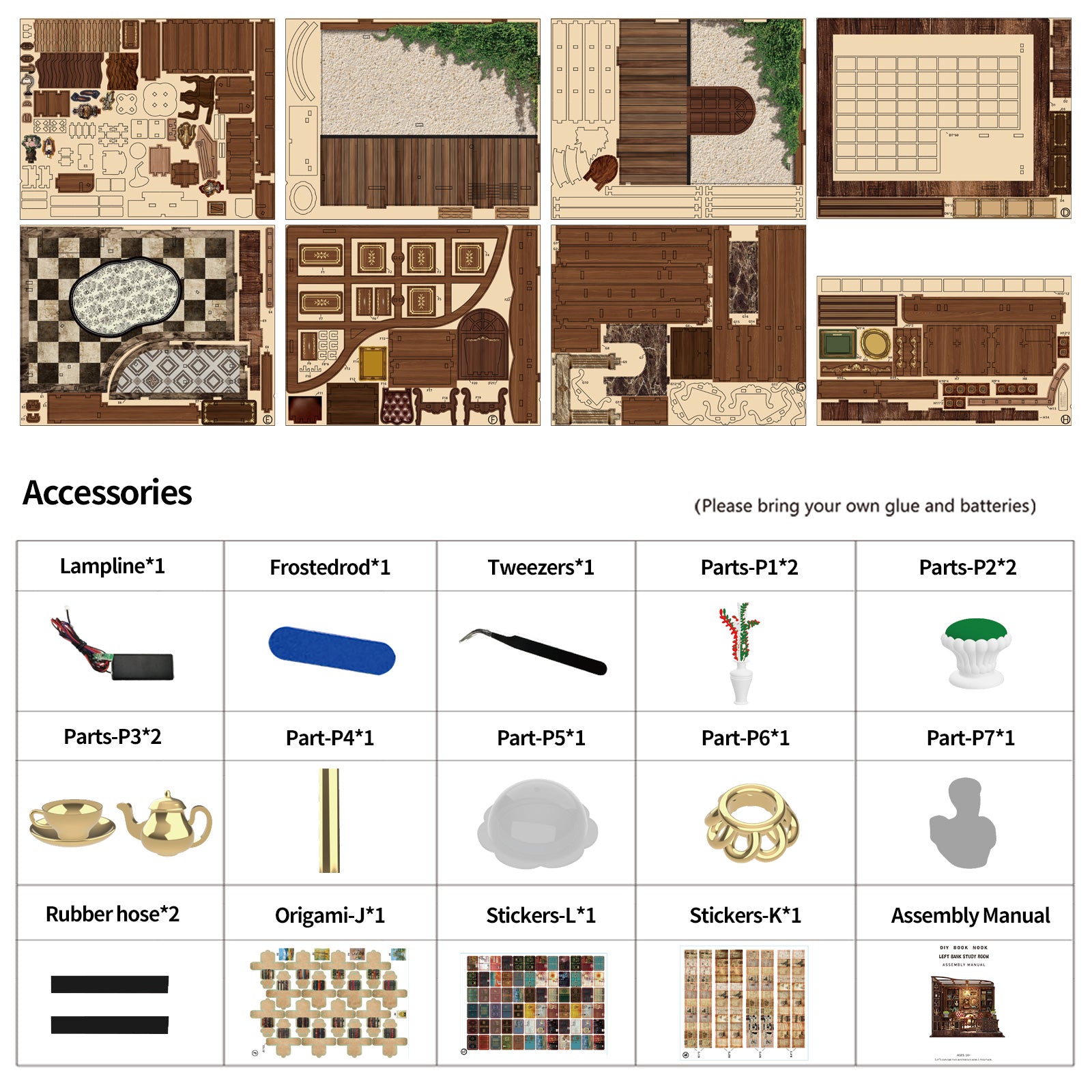 Included Accessories: Furniture pieces, lamp line, plants, ornaments, tweezers, stickers, and illustrated manual