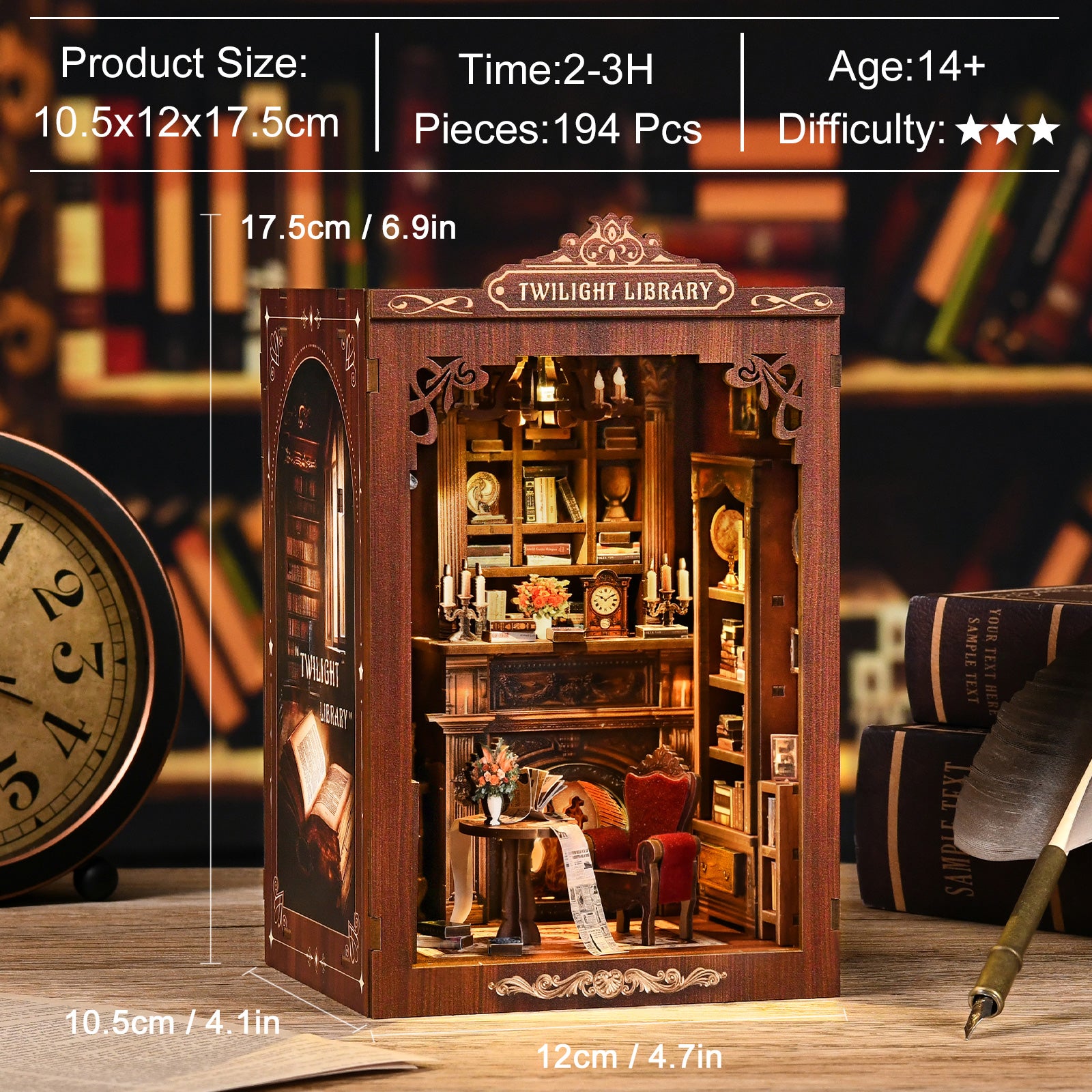 TJWFUNFUN Tiny Havens Collection – Twilight Library DIY Mini House Booknook, 194 PCS, Difficulty ★★★